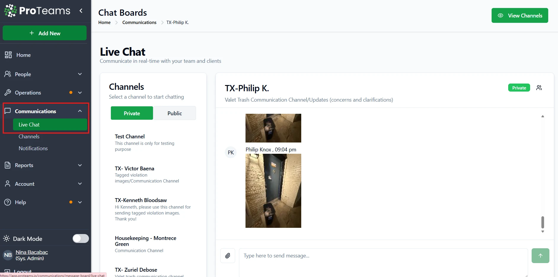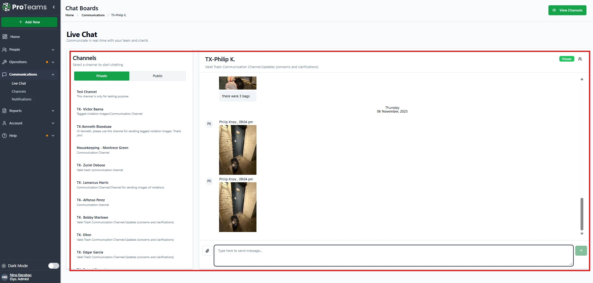 Text threads, WhatsApp groups, emails — when your team communication is scattered across multiple apps, things get missed. Live Chat keeps all of it inside ProTeams, organized by channel, tied to your operation, and available to the right people.