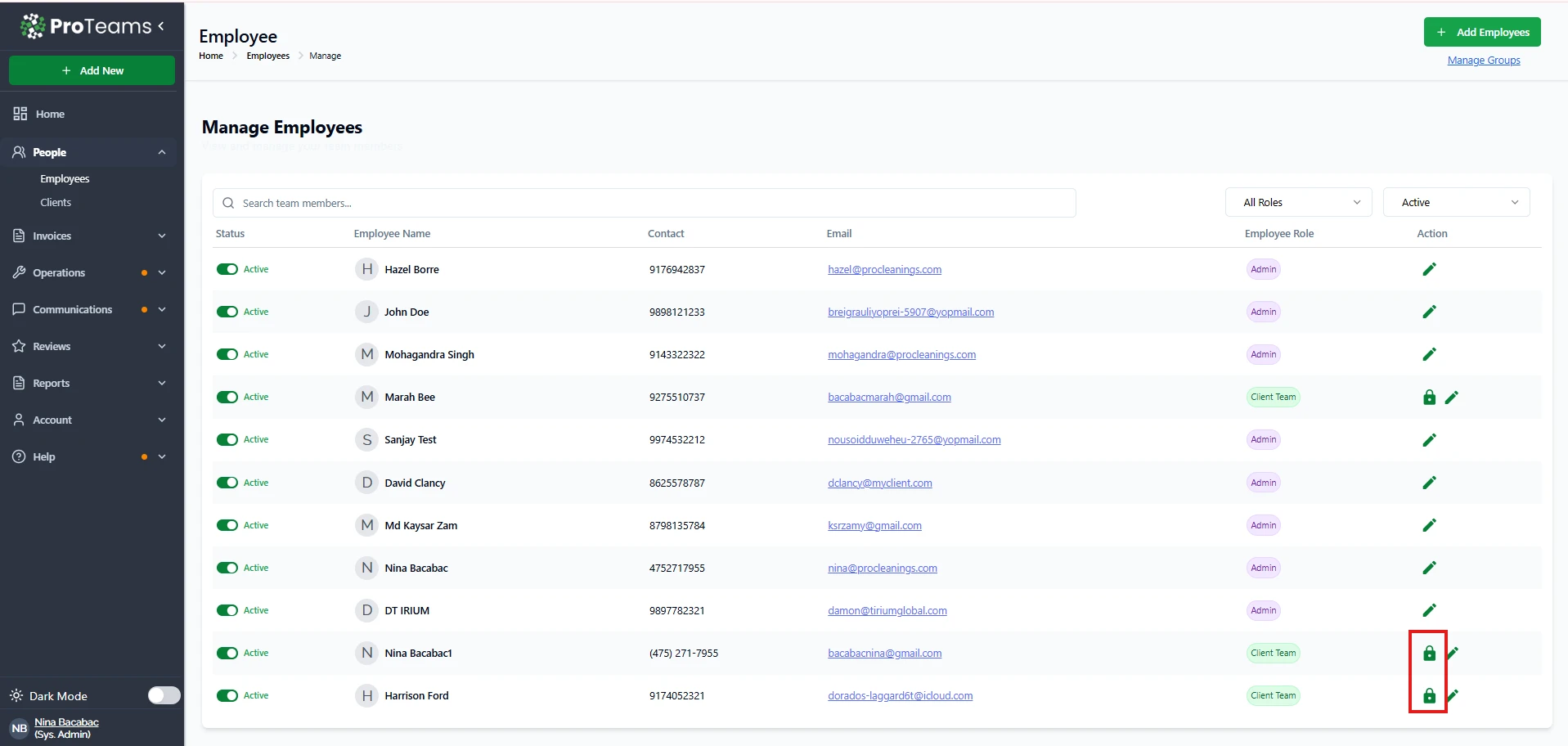 When employees experience problems with the ProTeams mobile app, administrators can quickly assist them by using the Lock Action to view the employee’s mobile interface. This ensures accurate troubleshooting, faster resolution, and better communication without needing physical access to the employee’s device.