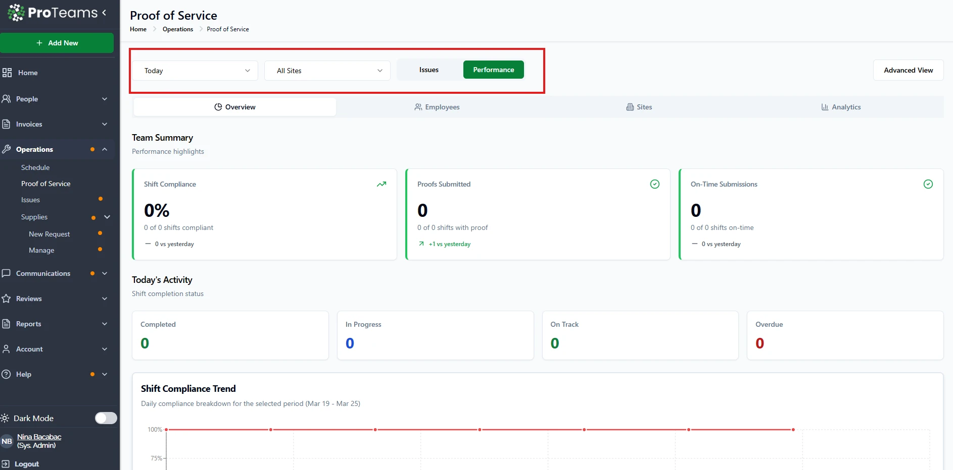 Issues tab daily, Performance tab weekly. That cadence keeps small compliance gaps from quietly becoming large ones.