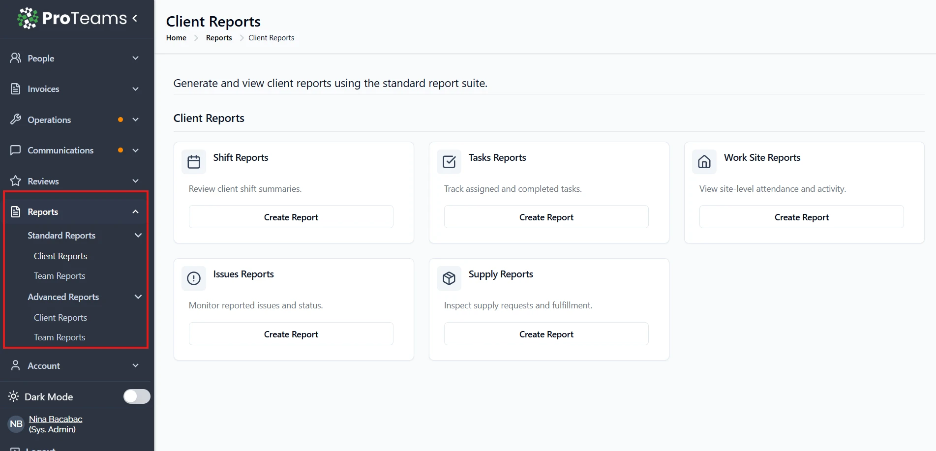 ProTeams captures a lot of operational data as your team works. Reports are how you turn that data into something useful — compliance summaries for client meetings, attendance records for payroll, issue trends for operational reviews.