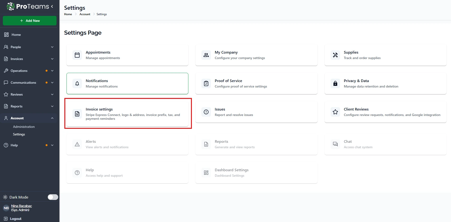 Invoice Settings is where you connect your payment processor, set how your invoices look to clients, and configure automated payment reminders. Get this right before you send your first invoice — it’s much harder to fix after a client has already seen inconsistent billing.