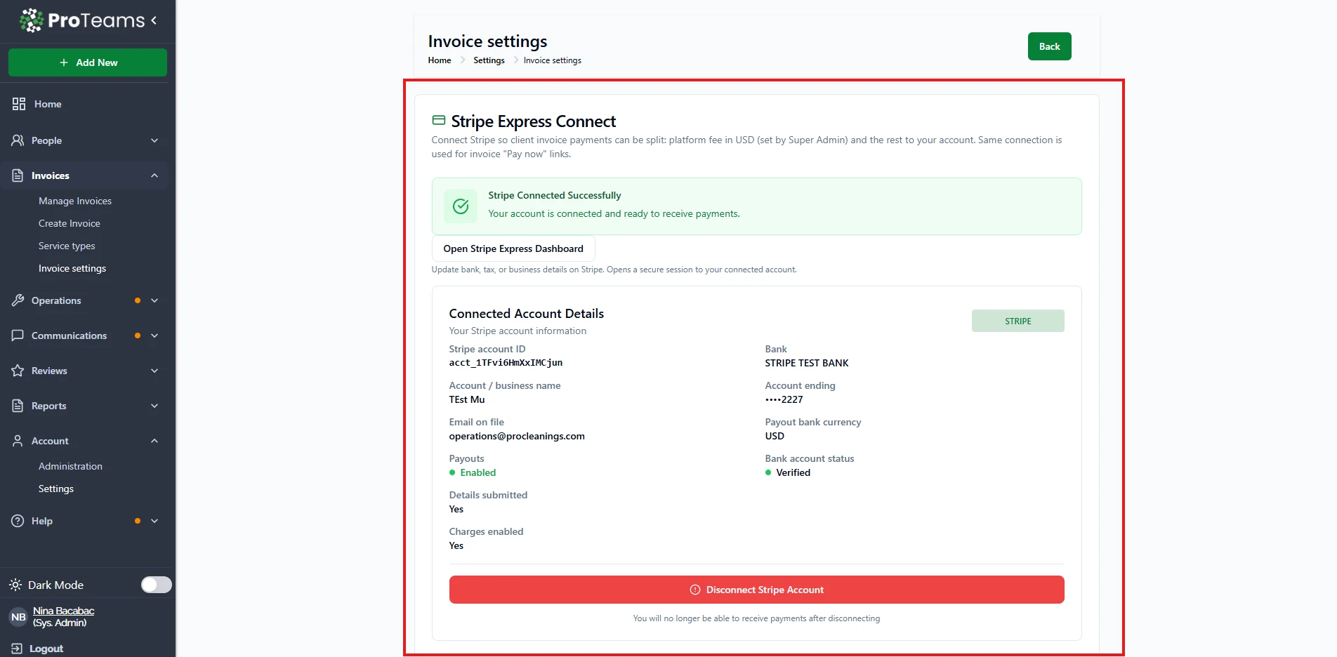 Payments won’t work until your Stripe account is fully verified. Complete the verification process before sending invoices with payment links.